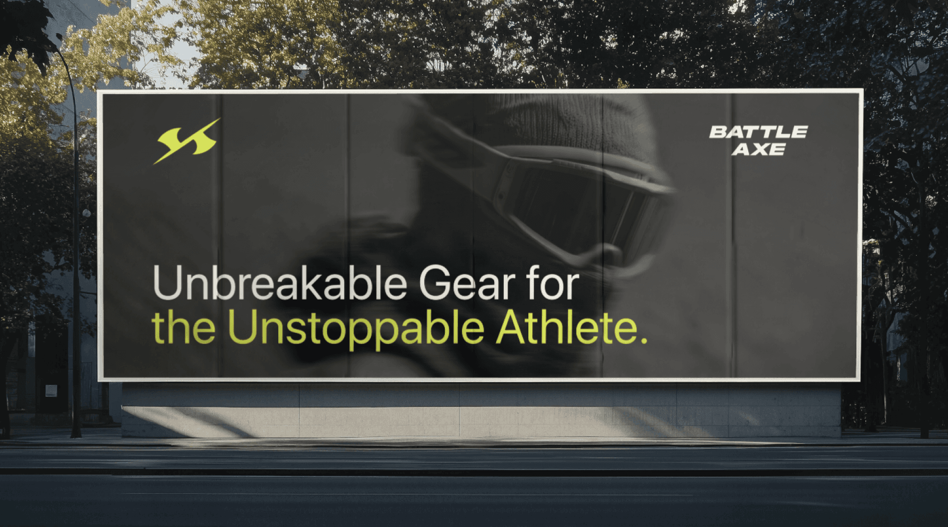 Battle Axe is a performance-driven sportswear brand built around strength, resilience and elevated athletic design. The identity merges sharp geometric structure