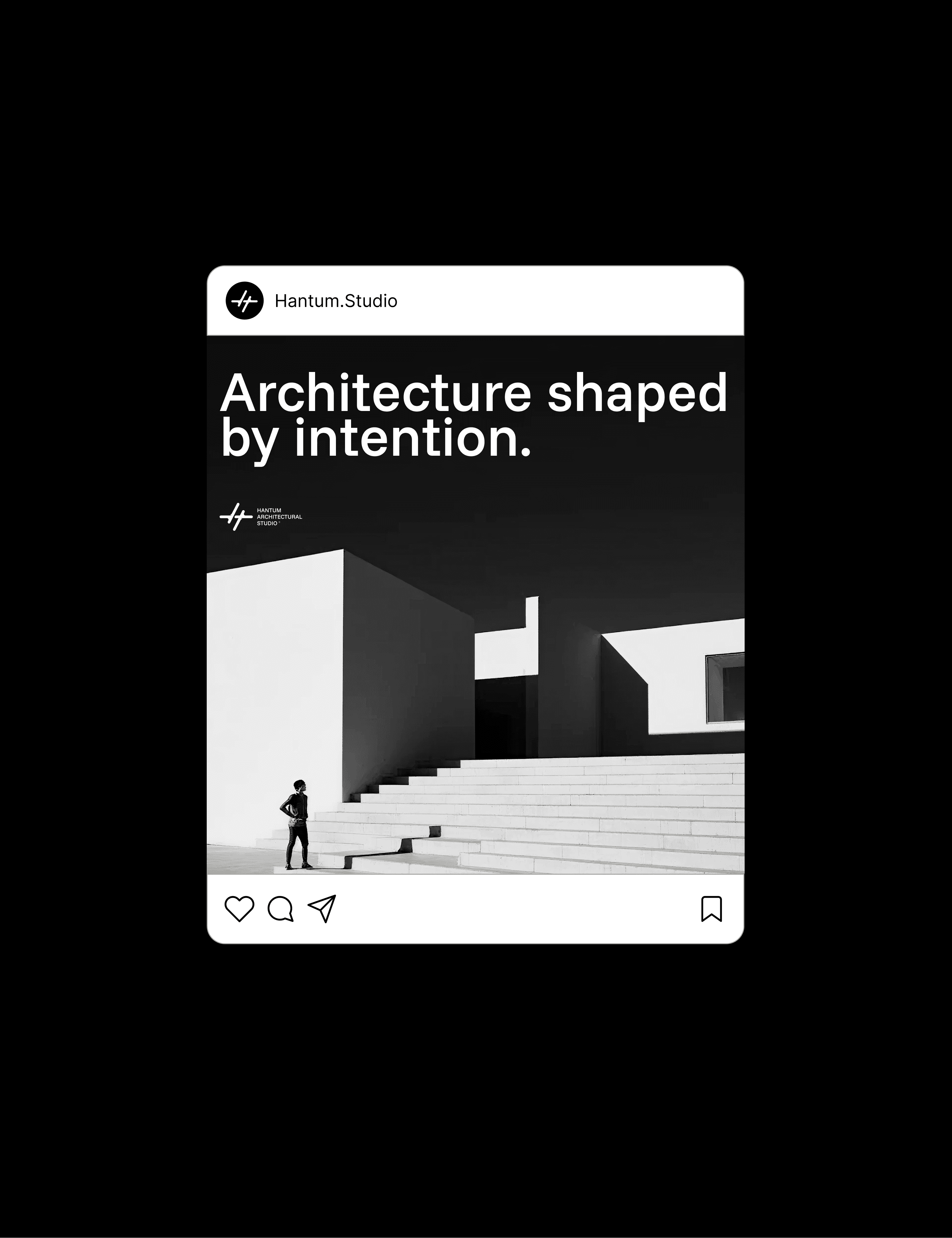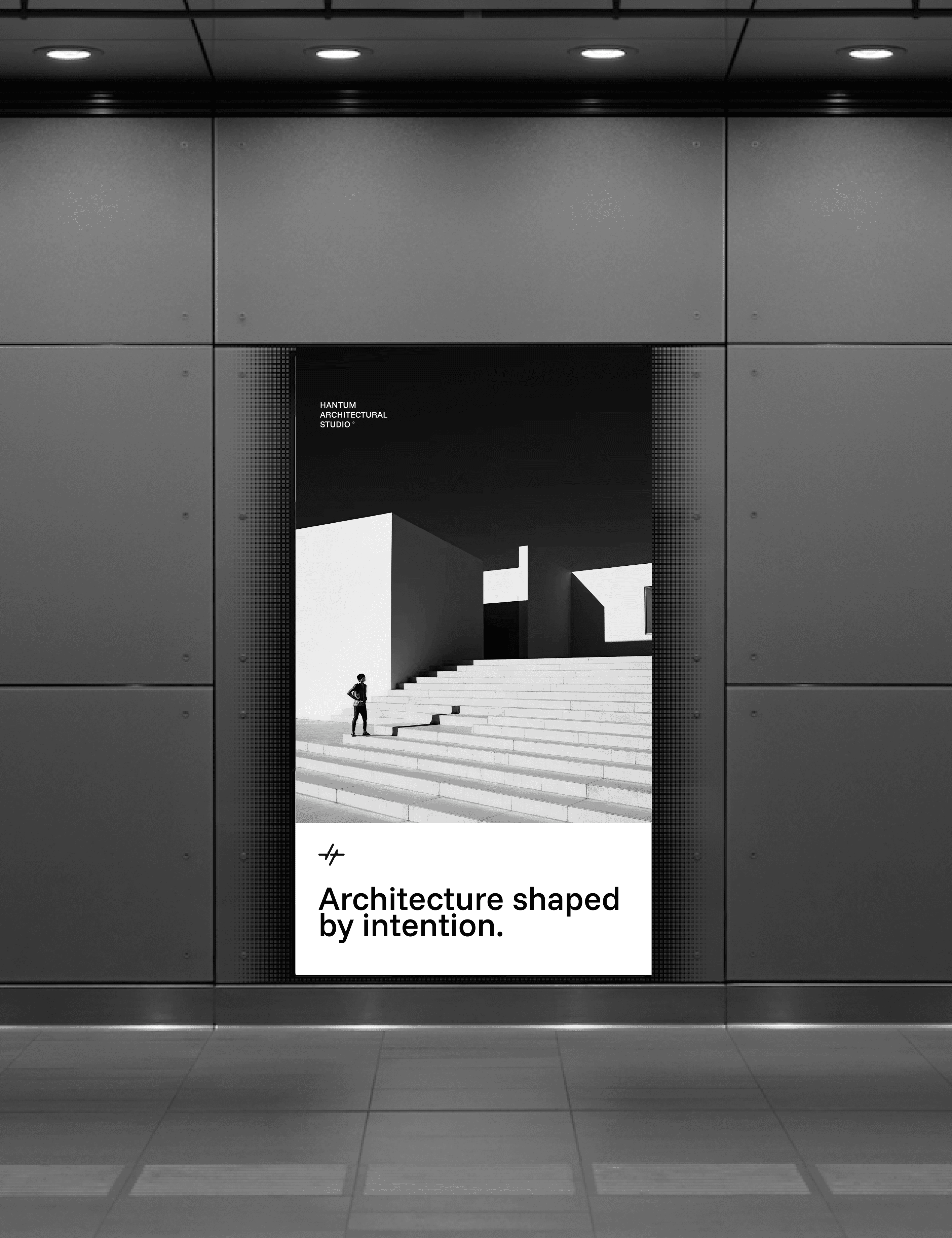 Hantum is a precision-driven architecture studio built around clarity, proportion and intentional spatial design. The identity blends disciplined geometric structure