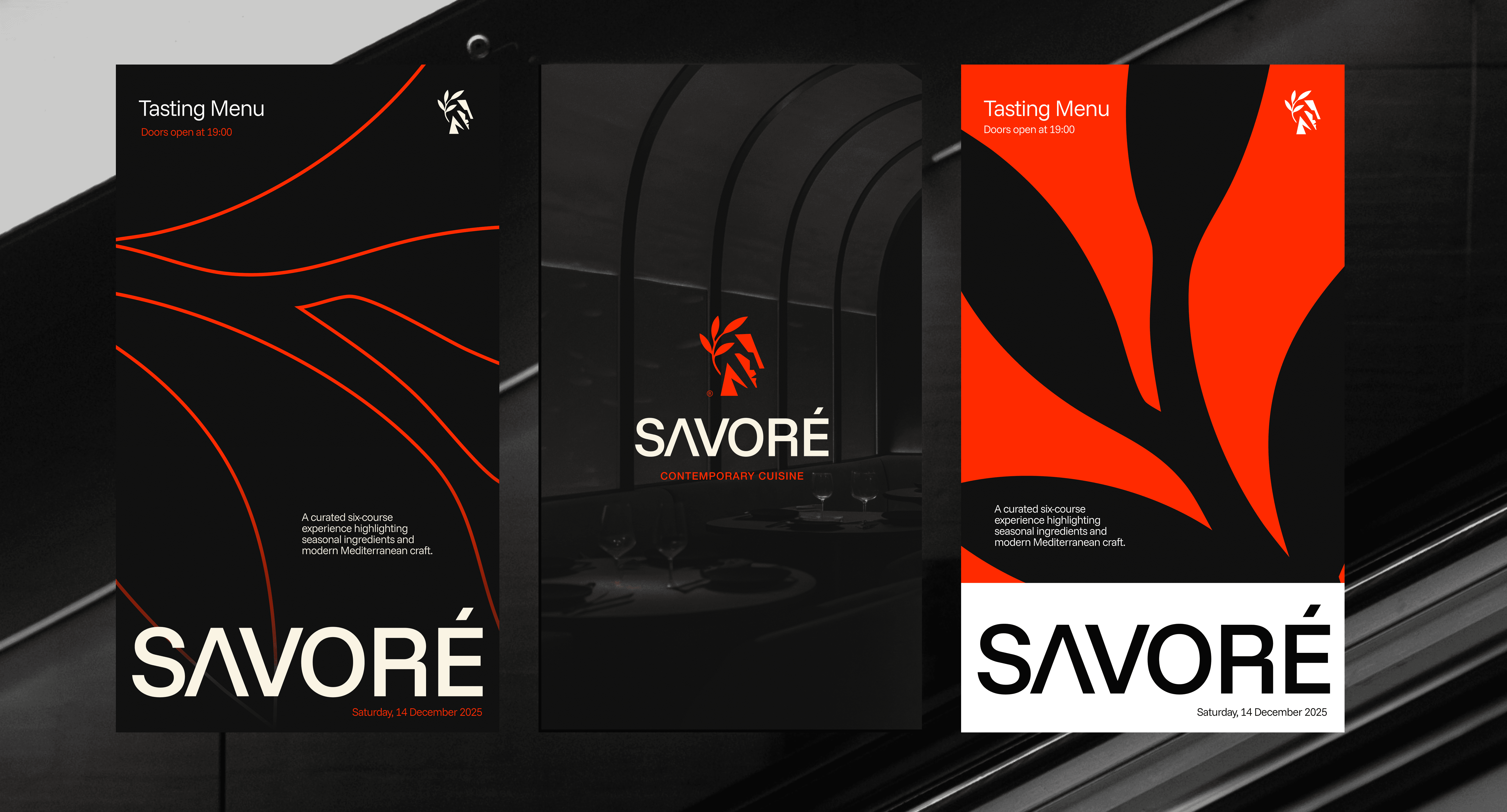 Savore is a modern culinary brand built around refined taste, balance, and an elevated approach to everyday dining. The identity blends elegant structure with subtle,