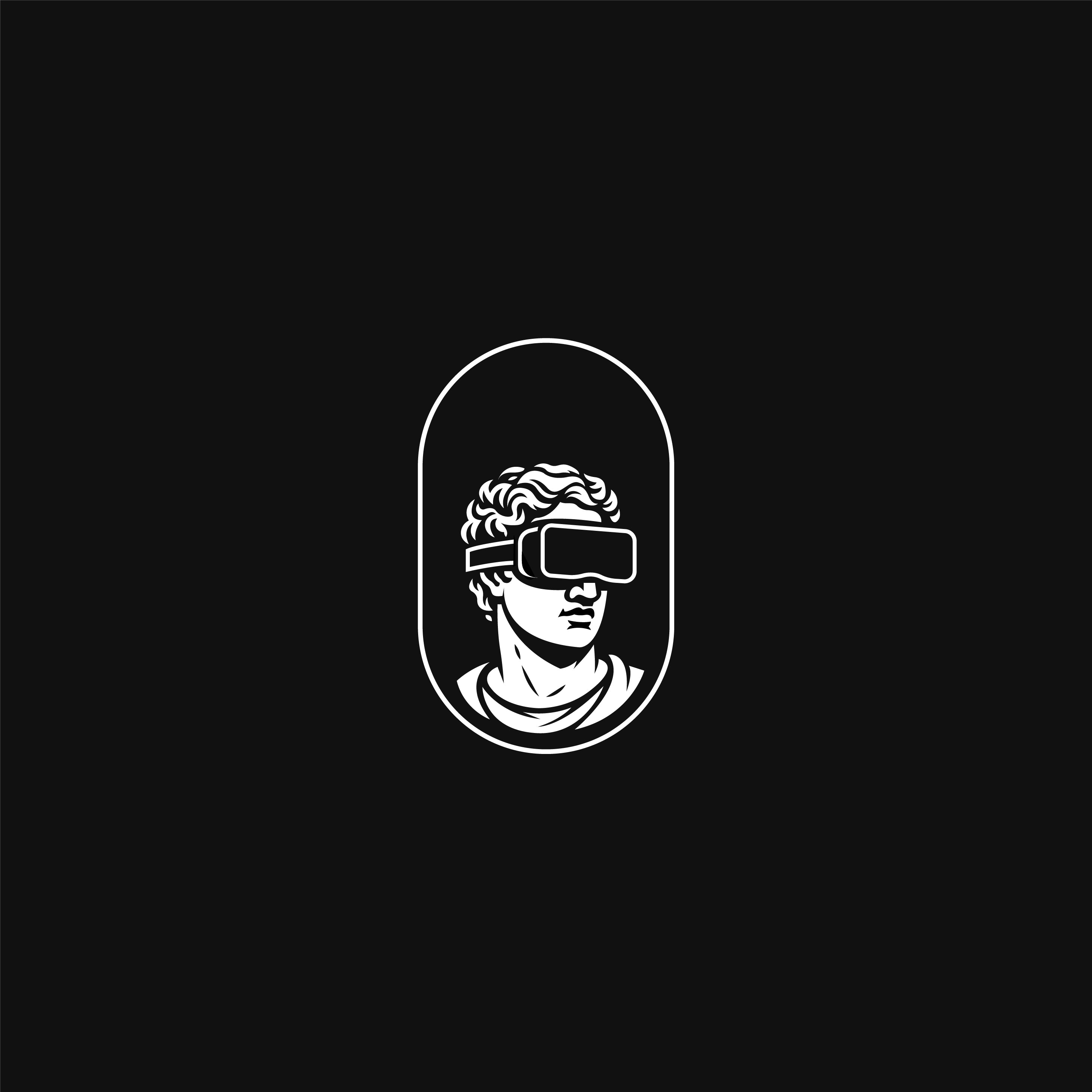 Inspired by ancient Greek philosophy, this logo represents the fusion of human intellect, vision, and immersive virtual reality experiences.