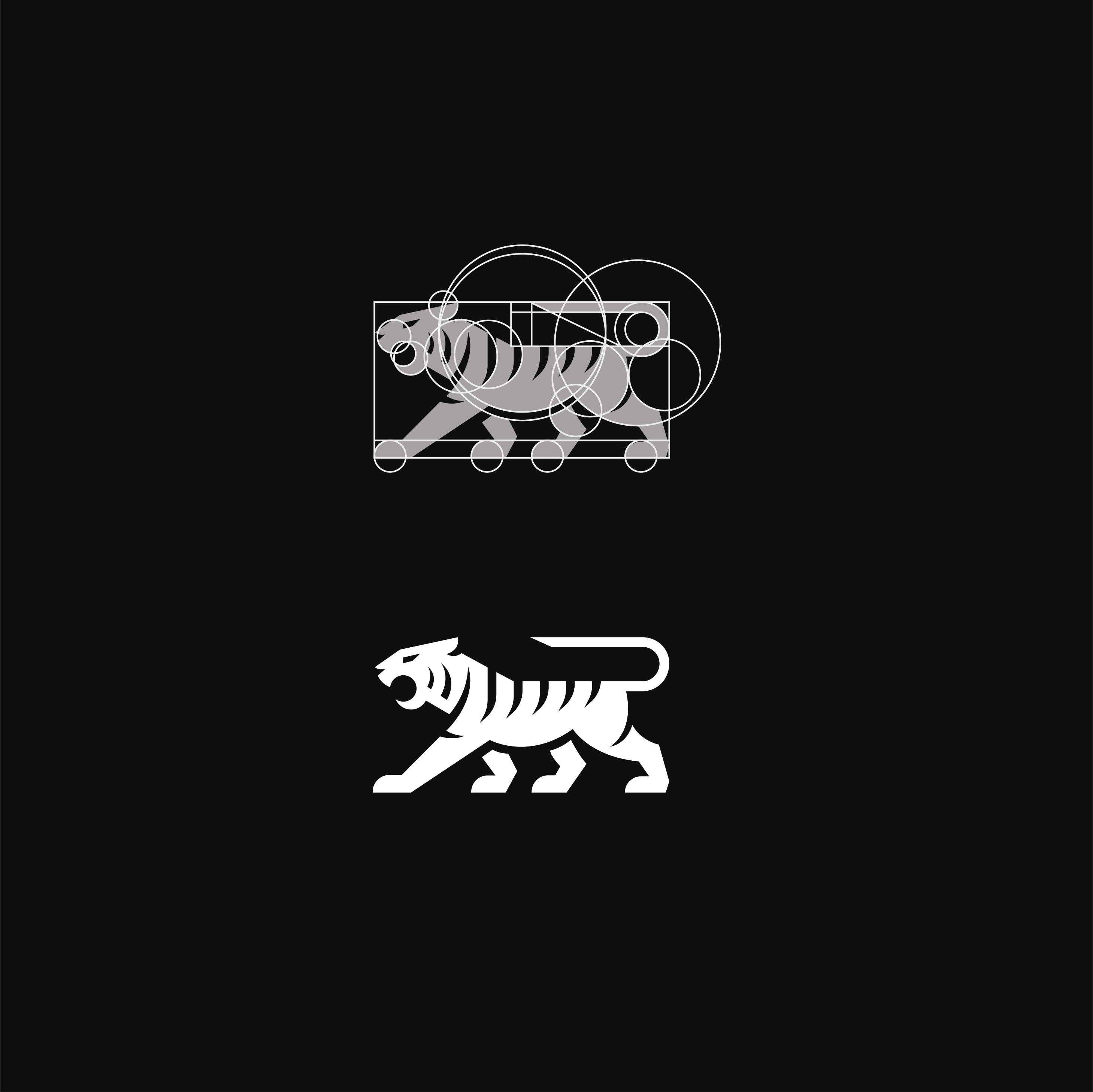 A minimalist, modern tiger symbol built with sharp geometry and clean negative space, expressing strength, control, and forward motion. The simplified form and bold contrast make it timeless, scalable, and digitally powerful.